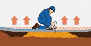 沈下や傾いた場所に硬質ウレタンを注入して、その膨張力で