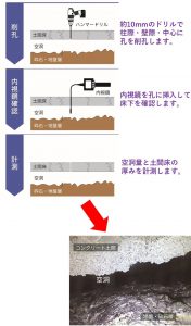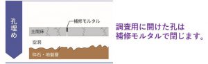 床下の空洞を埋め床を水平にします。こちらは特許工法です。