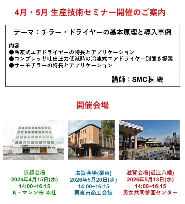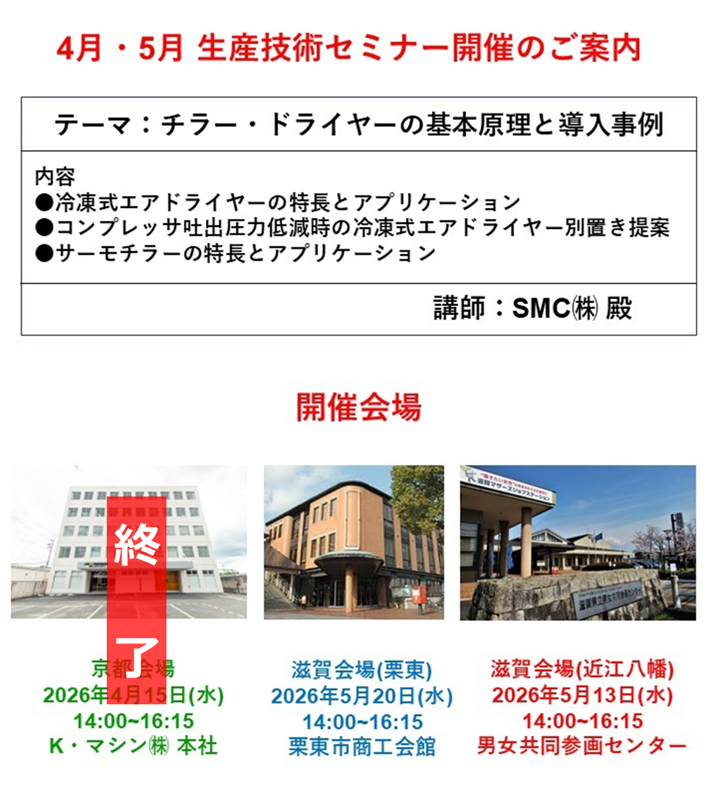 生産技術セミナー「チラー・ドライヤーの基本原理と導入事例」